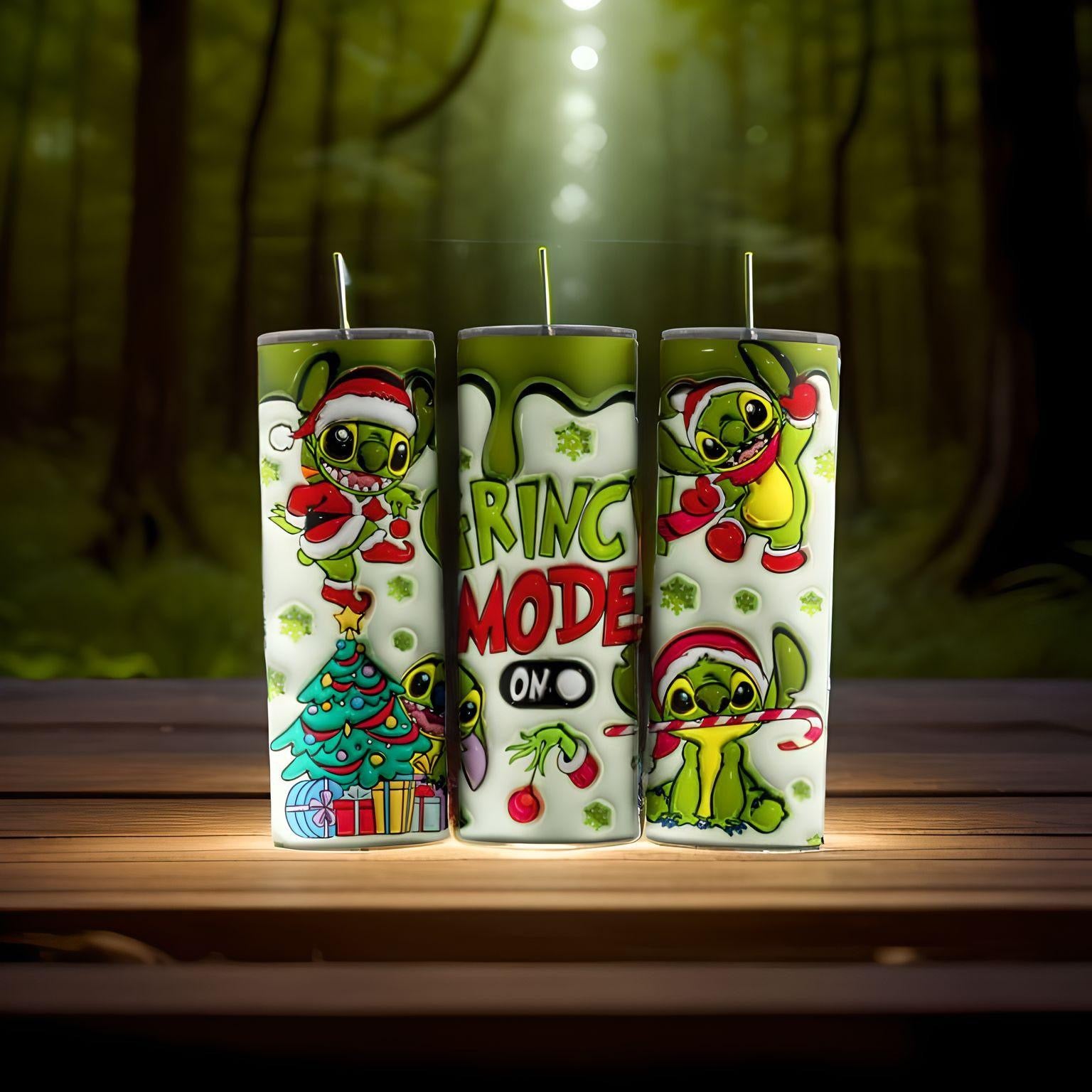 Christmas 20 ounce skinny Tumbler grinch mode stitch
