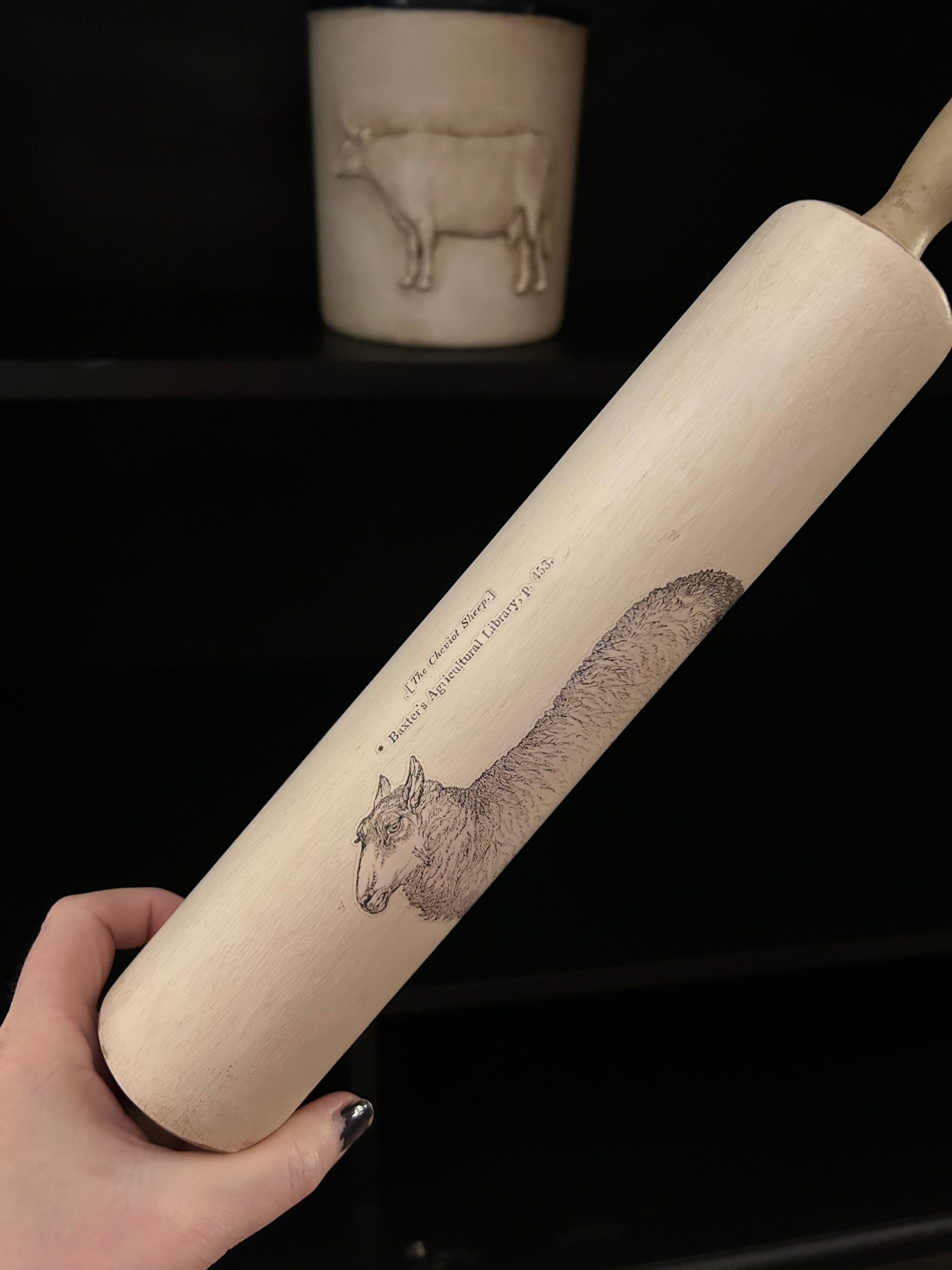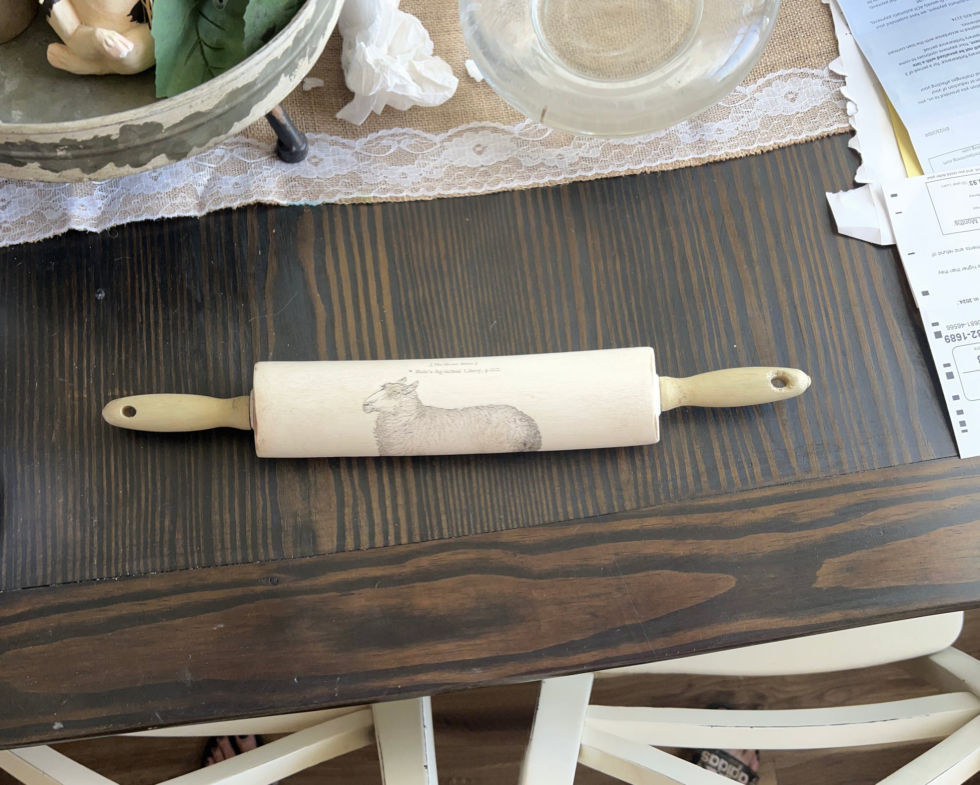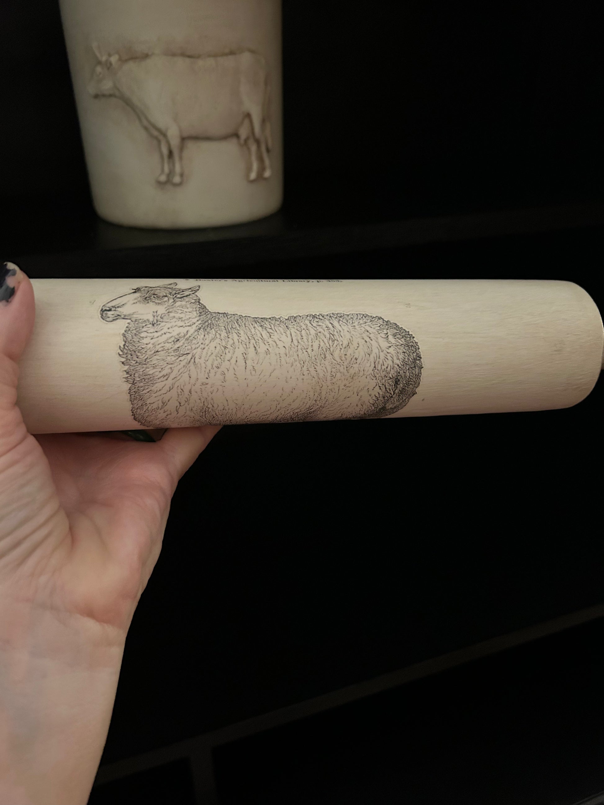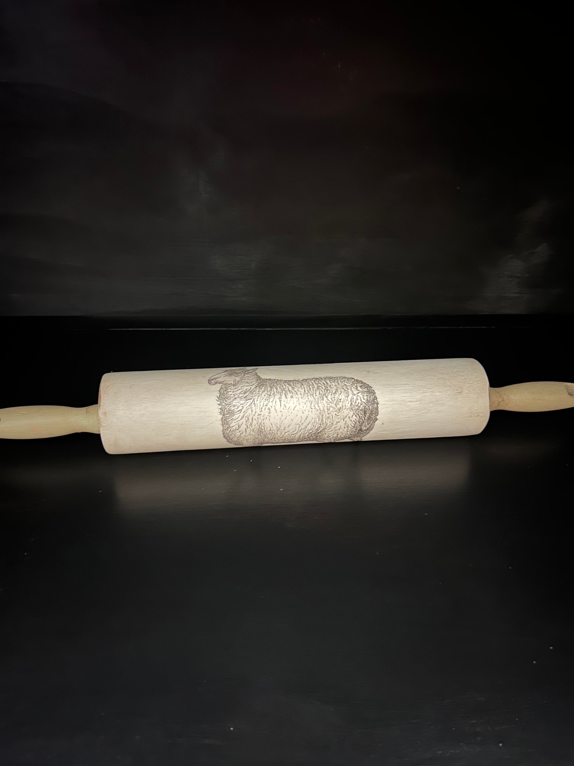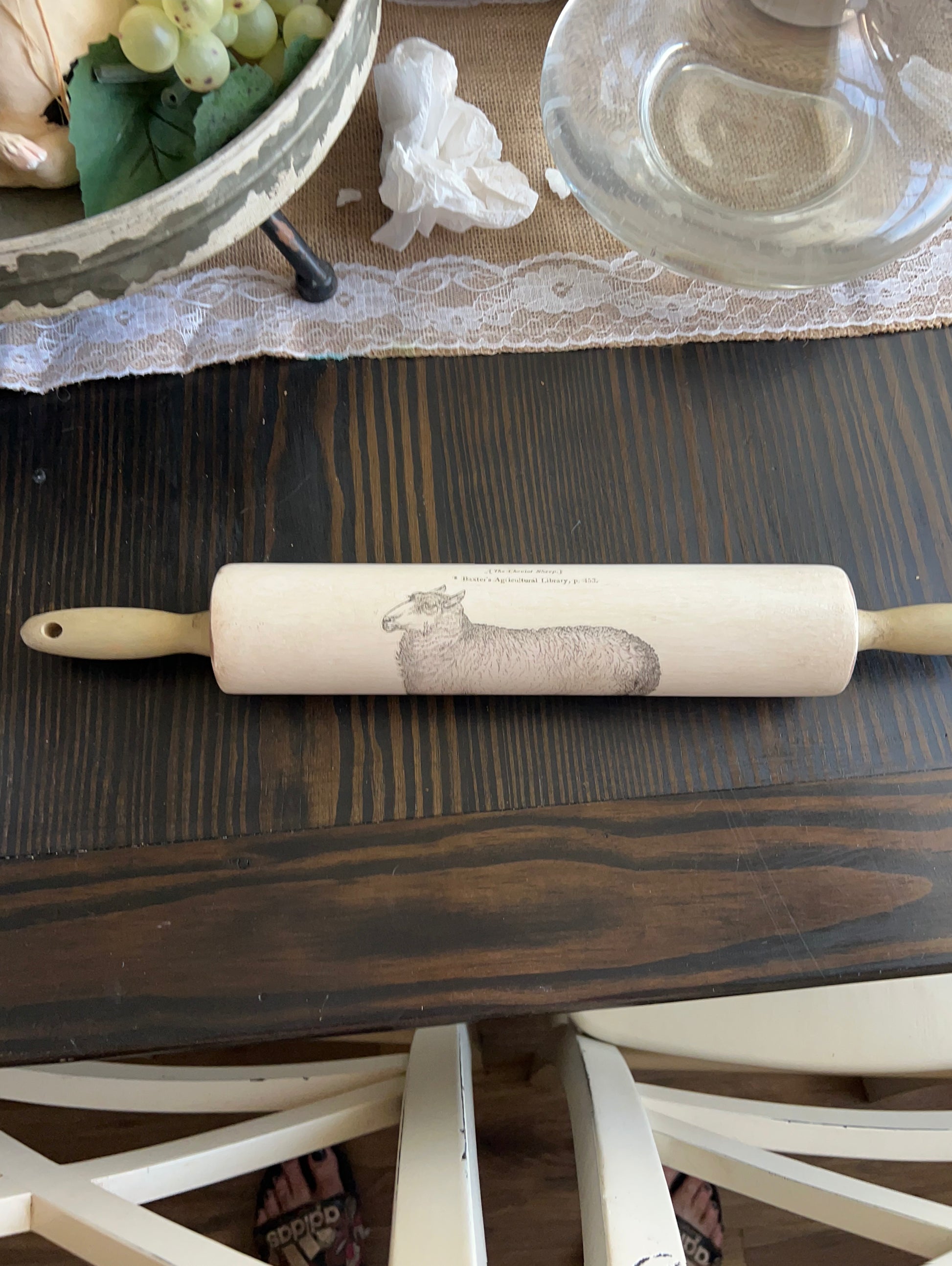 Farmhouse sheep rolling pin hand painted by sara"Bring charm to your kitchen with our hand painted Farmhouse sheep rolling pen! Each piece is painted by Sara and adds a touch of rustic elegance to your home decor . Perfect for gifts or adding character to your own kitchen. Order now and add a unique touch to your kitchen !" One one available