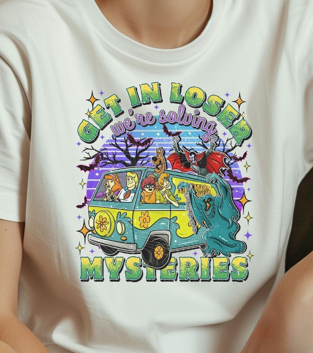 Introducing the "Get in loser we're solving a mystery" shirt, designed by Sara. With a playful and eye-catching slogan, this shirt is perfect for anyone with a passion for solving mysteries. Made with high-quality materials and expertly crafted, this shirt is both stylish and comfortable. Show your love for solving mysteries with this fun tshirt.