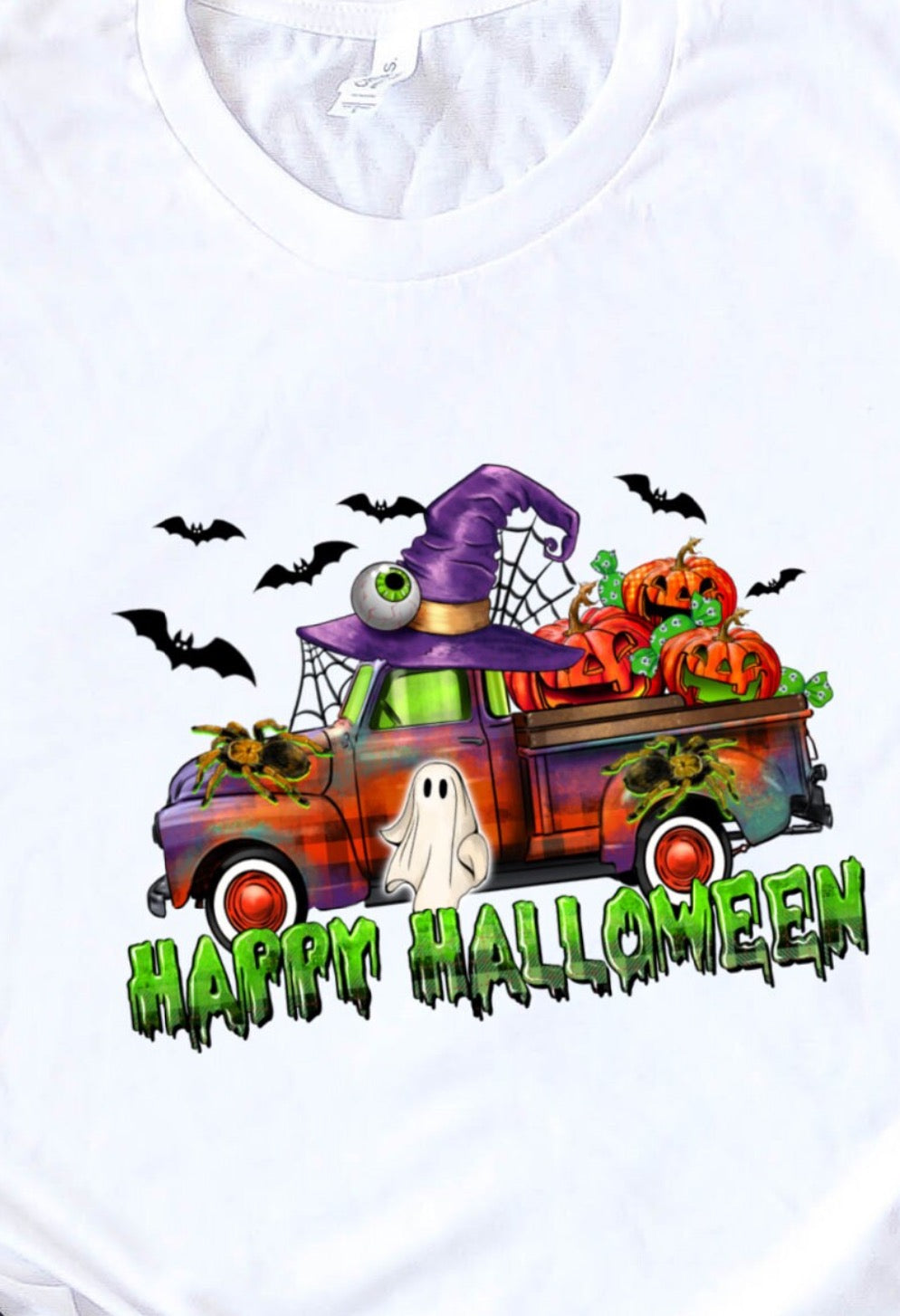 Introducing sarasredesigned.com's Happy Halloween t shirt! Made with high-quality materials, this t shirt is perfect for celebrating the spooky season. Get into the Halloween spirit with this unique and trendy design. Order yours today and make a statement wherever you go.