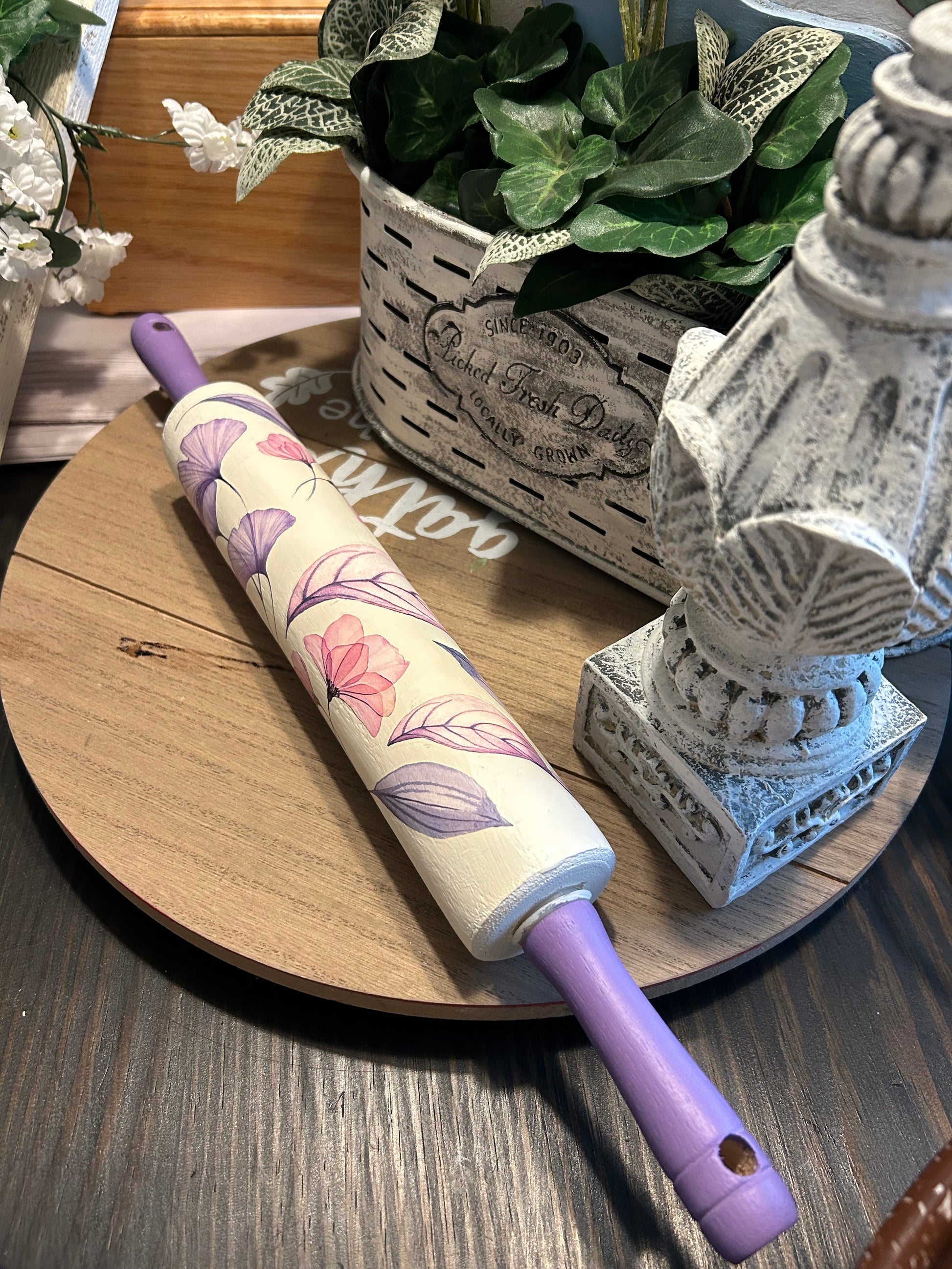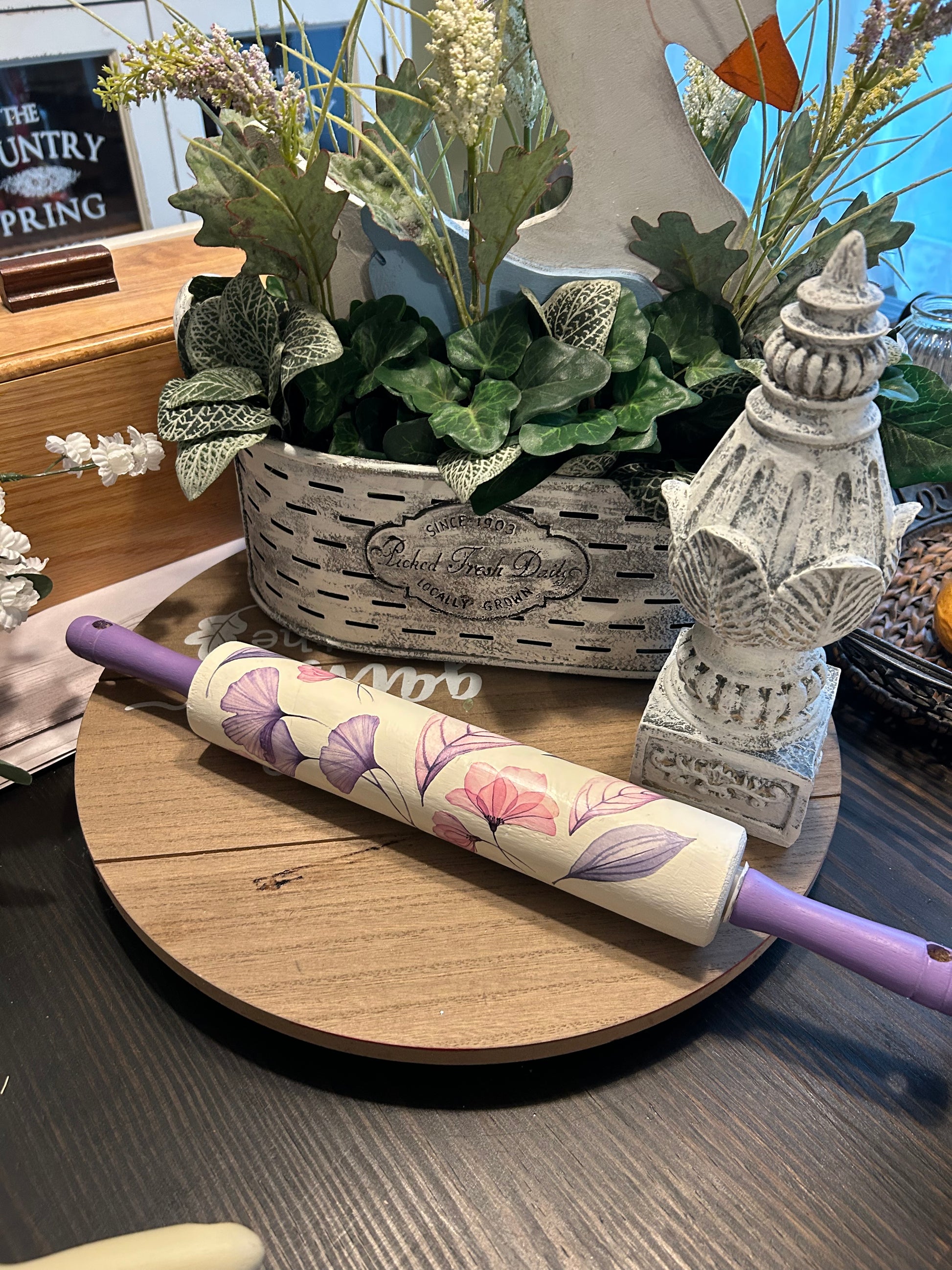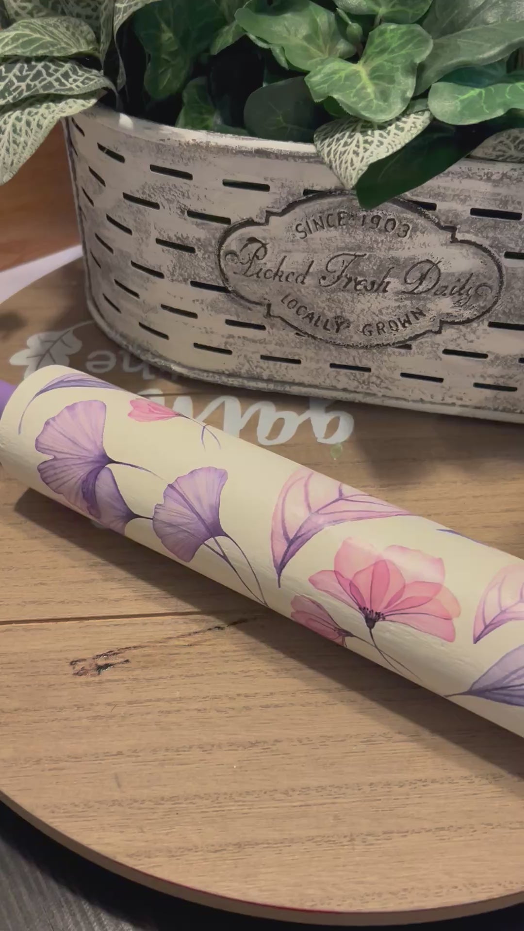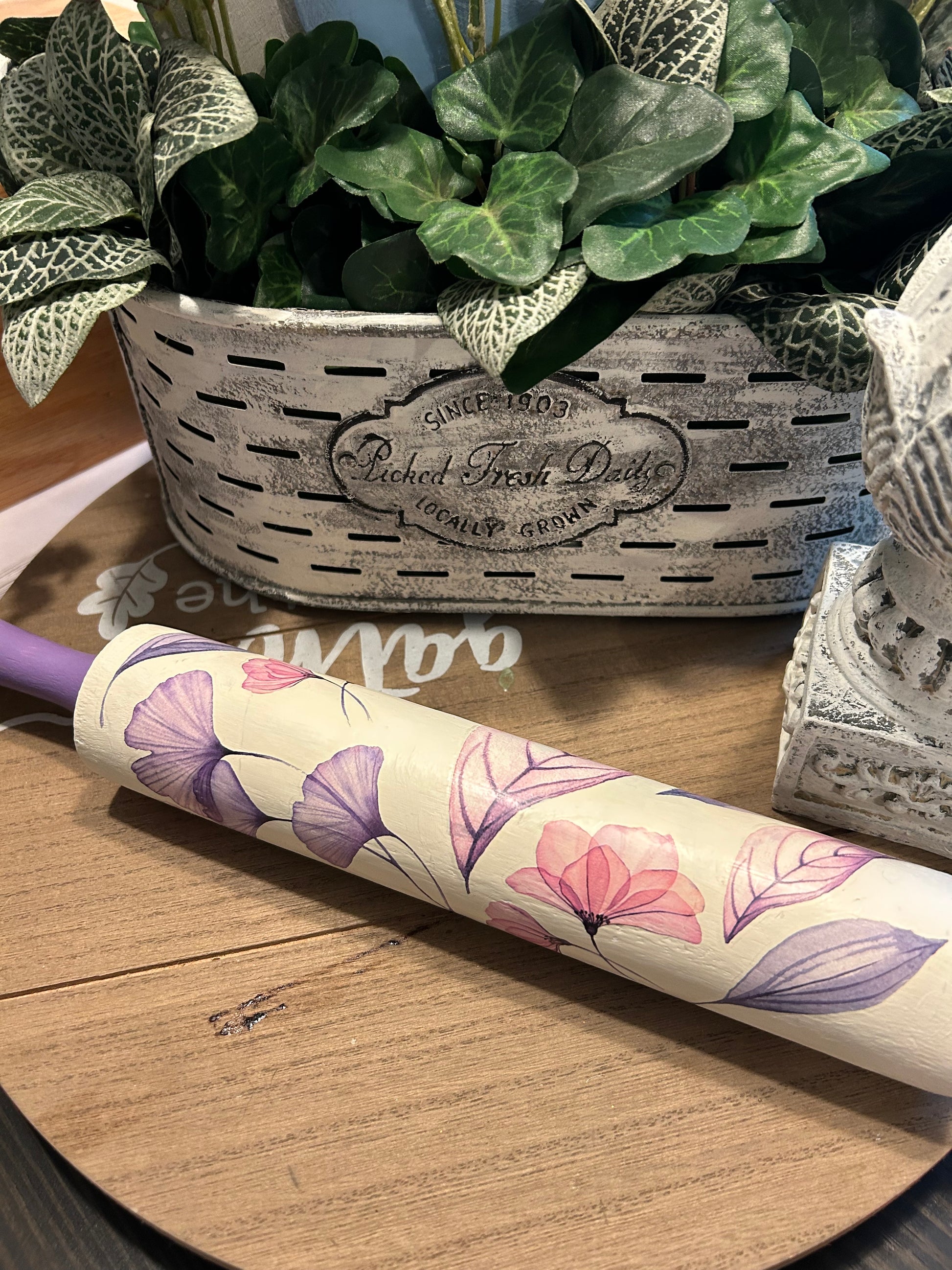 Enhance your kitchen decor with this vintage floral rolling pin, hand-picked by Sara's redesign. With its unique design and 18-inch size, this thrifted item is sure to add character to your home. Each vintage piece may show slight signs of wear, adding to its charm.
