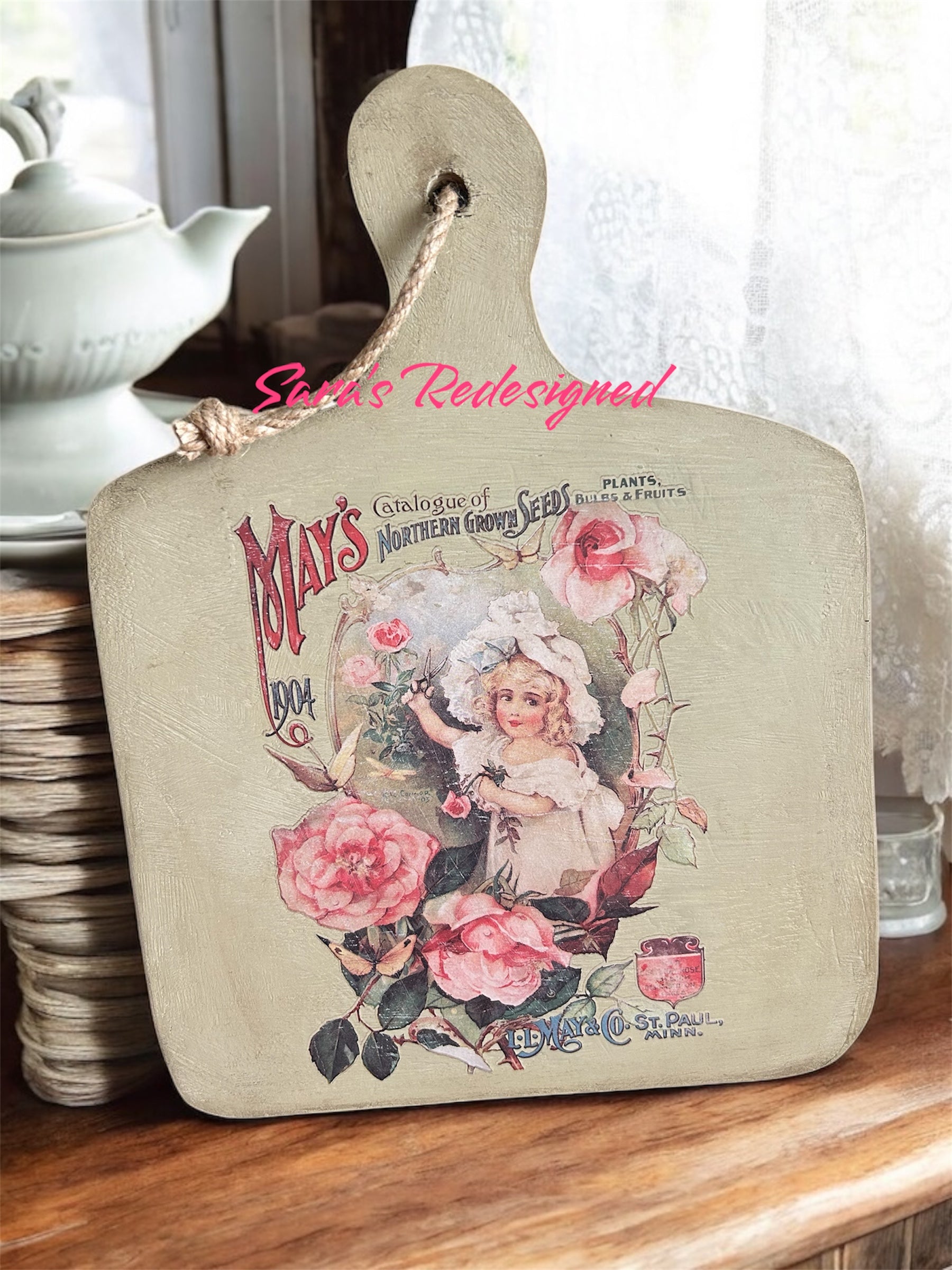 Expertly crafted by Sara, this vintage-style seed catalog board is the perfect addition to any farmhouse home. Made from recycled 1/2 inch wood, this unique piece is not only environmentally friendly but also adds a charming touch to your home decor. Size 12 in tall 9 in wide