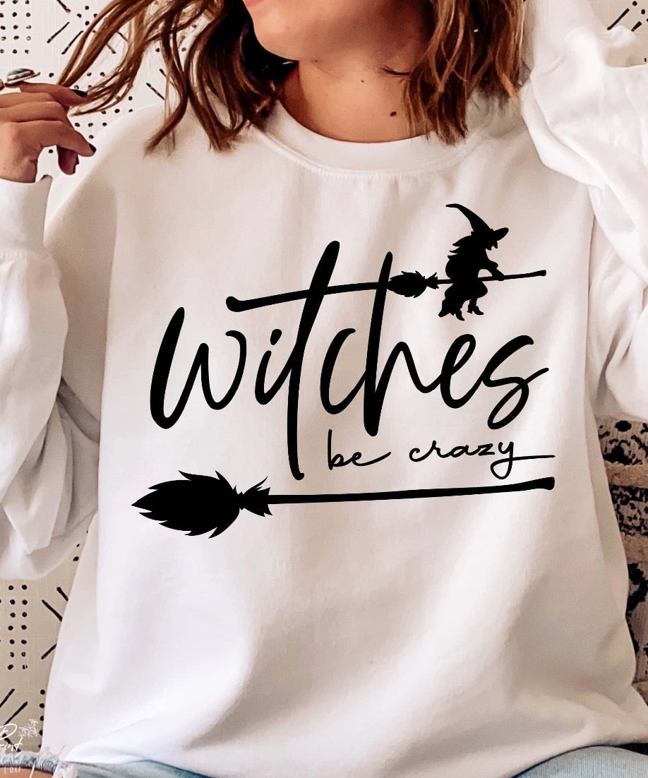 "Get ready to spook up your wardrobe with the Witches be scary sweatshirt by Sara. This one-of-a-kind sweatshirt is perfect for anyone who loves a little witchy fun and wants to stand out in a crowd. Made with high-quality materials, it's sure to keep you cozy and stylish all season long. Grab yours now!"